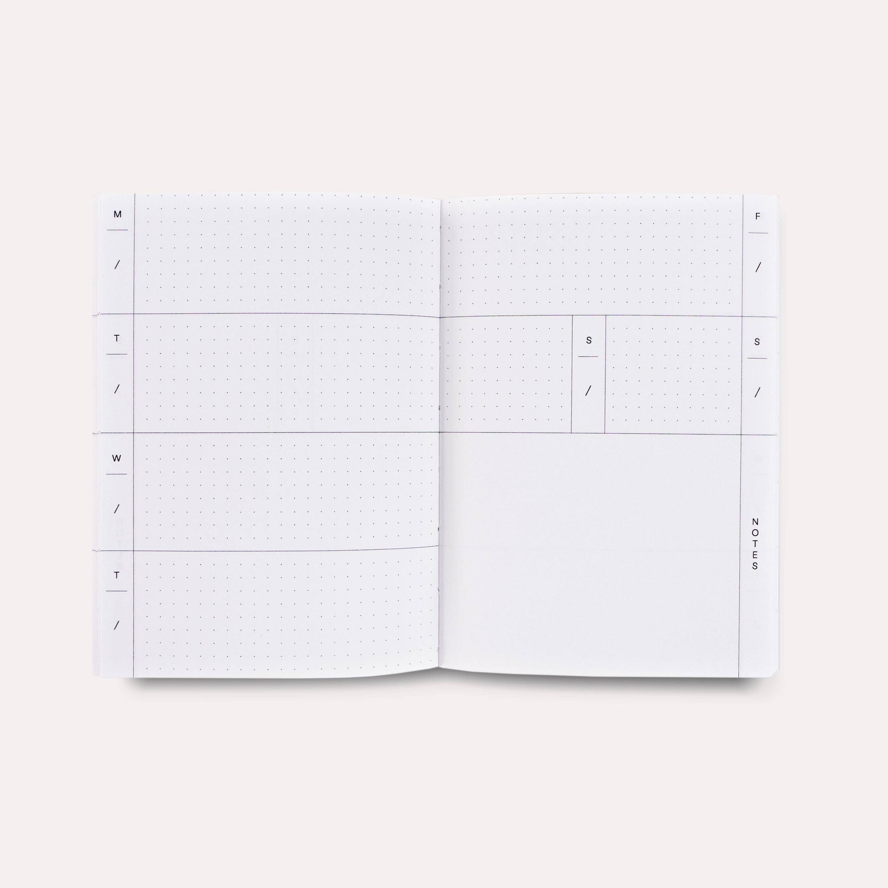 Stay organised on the go with this A6 pocket weekly planner featuring our punchy Miami print - inspired by pastel palettes, art deco shapes, and tropical energy. It offers 52 undated weekly spreads, lay‑flat binding, and compact portability—perfect for bold plans in small spaces. A6 size (10.5 x 14cm), 128 pages, 52 undated weekly spreads, 12 month pages. Lay-flat binding for easy writing. 90 gsm responsibly-sourced sheet music paper. Hammered texture 250gsm soft cover. Made in the UK by a family-run music book manufacturer. Comes with a matching bookmark and is packed in a card folio box, making it perfect for gifting (also plastic free). Great for: Pocket planners · Travel journals · On‑the‑go organisation Tags weekly planner, undated planner, A6 planner, pocket planner, overlay shapes print, layflat planner, UK made, eco paper goods, desk accessories, gift for creatives, home office, week planner, grad gifts