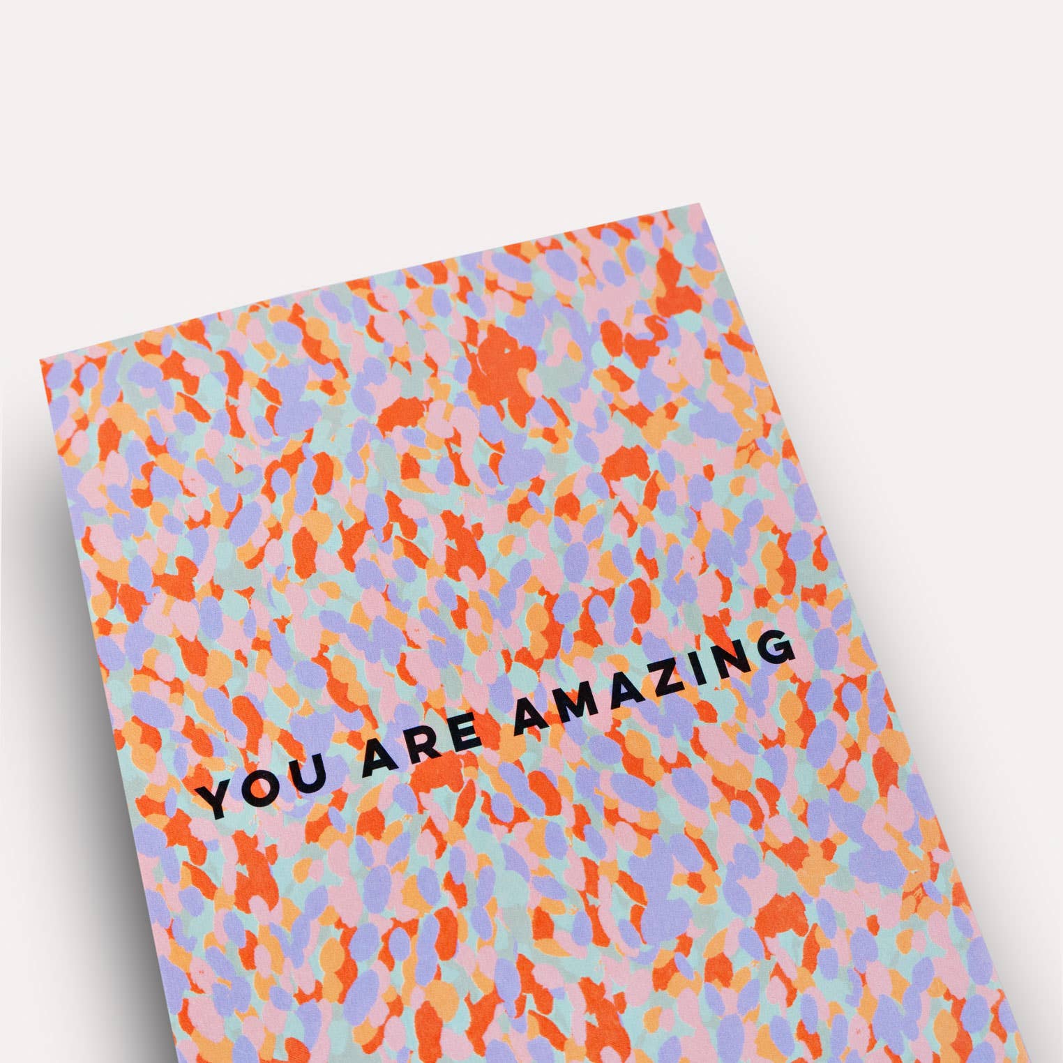 This one pulls no punches. The You Are Amazing Confetti card brings serious attitude with its graphic colour blocking and unapologetically loud message. Perfect for those moments that call for praise - no fluff, no filter. Paired with a lilac envelope that keeps things chic, and printed on heavyweight 300gsm responsibly-sourced stock, it’s blank inside so you can write your own flavour of amazing - whether it’s heartfelt, hilarious, or just wildly direct. Details: • A6 size (10.5 x 14.8cm) • 300gsm responsibly-sourced cardstock • Lilac envelope included • Printed in the UK • Blank inside for your own message • Biodegradable film bag Great for: Design lovers · Graphic stationery fans · Smart, sassy compliments graphic card, you are amazing, confetti design, lilac envelope, UK made, responsibly sourced, bold stationery, modern compliments