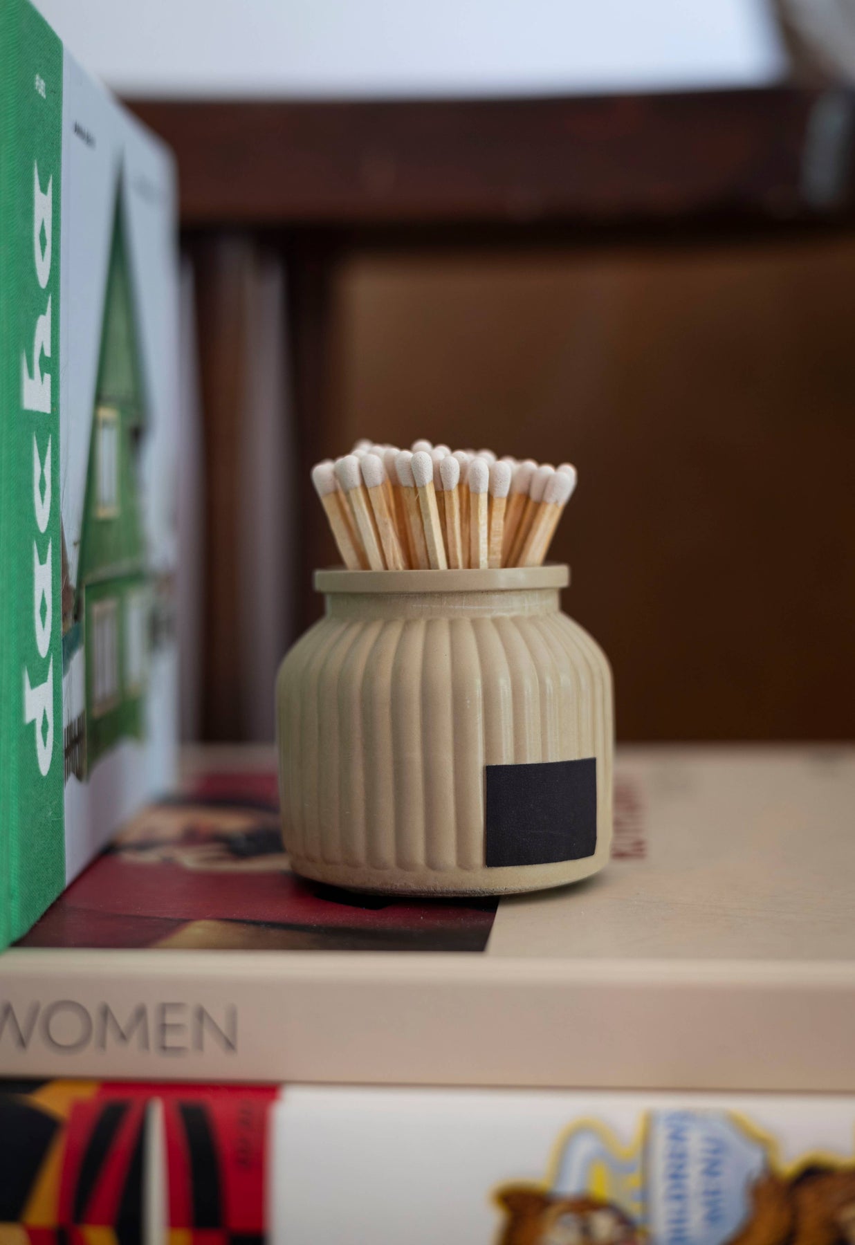 The Apothecary Candle Match Holder – Long Matches The Apothecary is a sturdy match holder designed to elevate your candle ritual. It features extra-long 3" matches—perfect for lighting multiple-wick candles with ease. Practical, beautiful, and built to last. With its western-inspired design and durable hand-poured concrete form, this piece adds both style and utility to any shelf, tray, or tabletop. Includes 3" candle matches Handmade in small batches in Nashville, Tennessee Natural color variations, textures, and air bubbles are part of the charm—no two are exactly alike