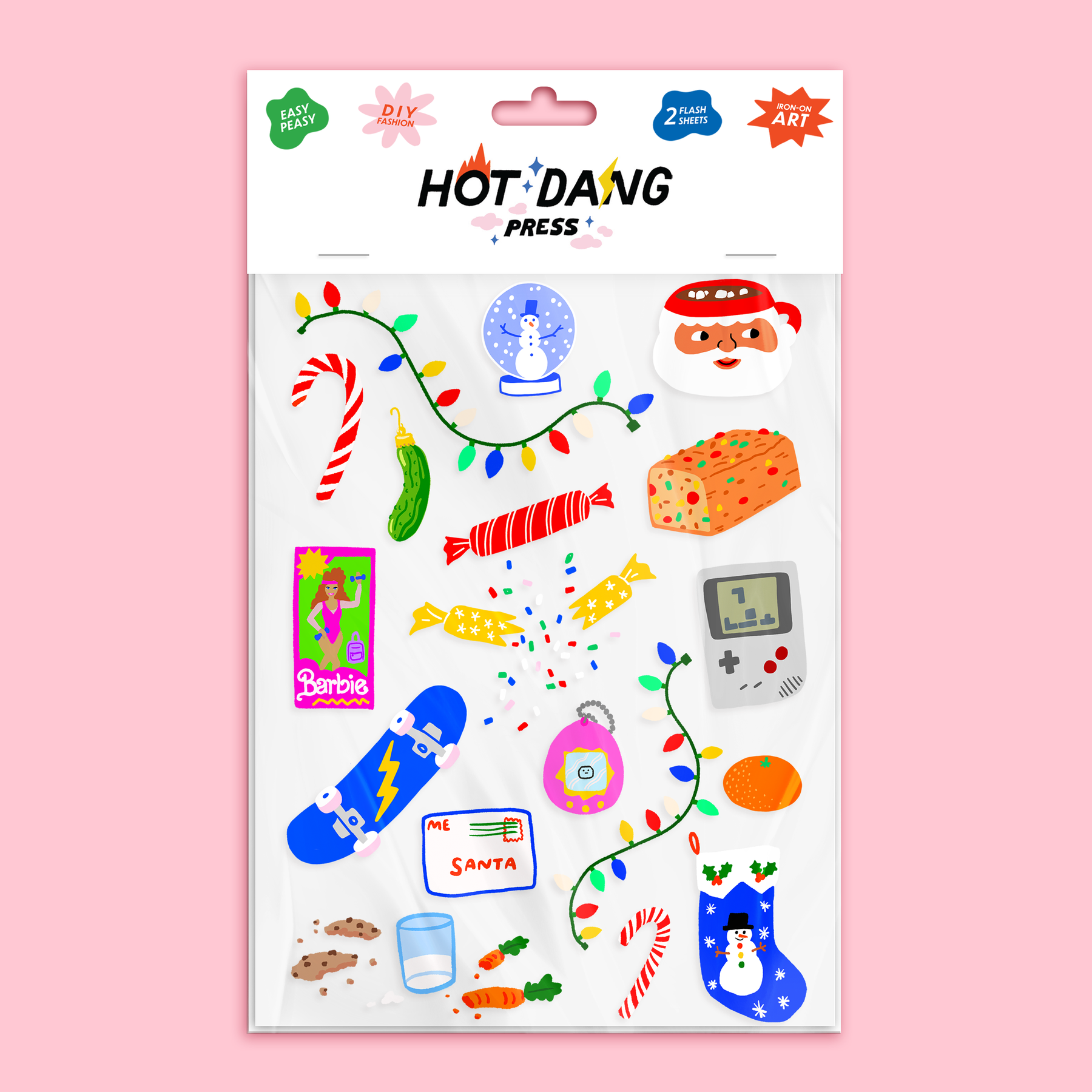 Iron-on art to customize and enhance your apparel, totes, hats, tea towels, bandanas, handkerchiefs, leather goods, and other treasures. Each set includes two sheets of the displayed illustrations, heat protective parchment paper for application, and easy peasy instructions. You bring the heat! All you need is an iron. Sheets are 5.25x7.5 inches.