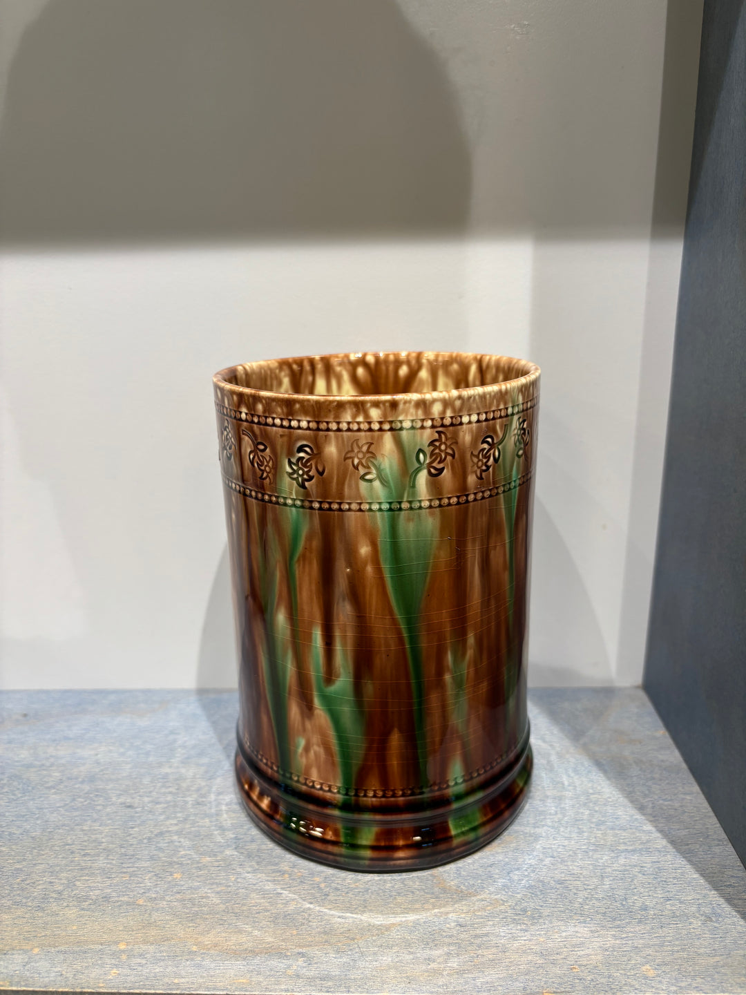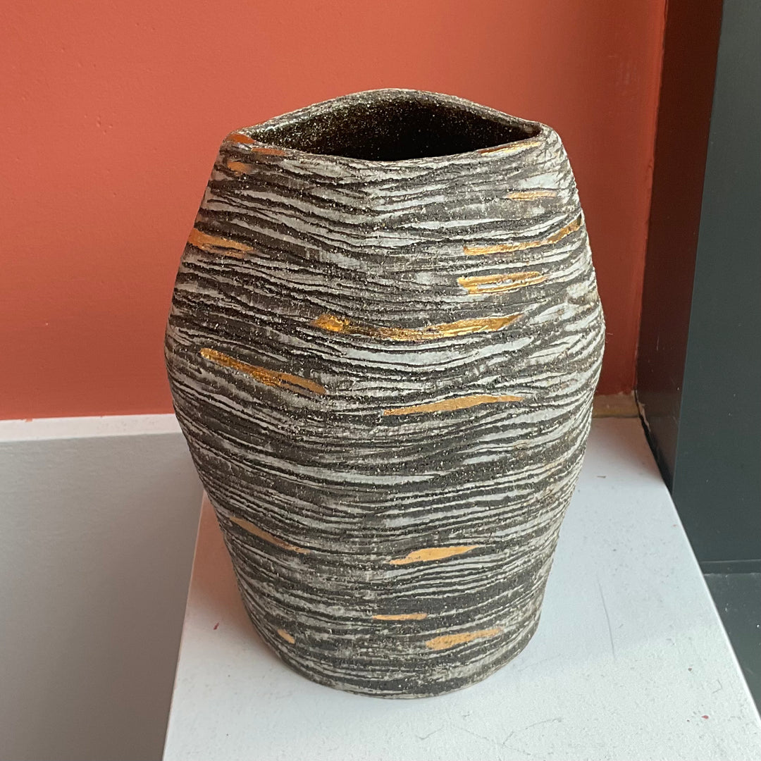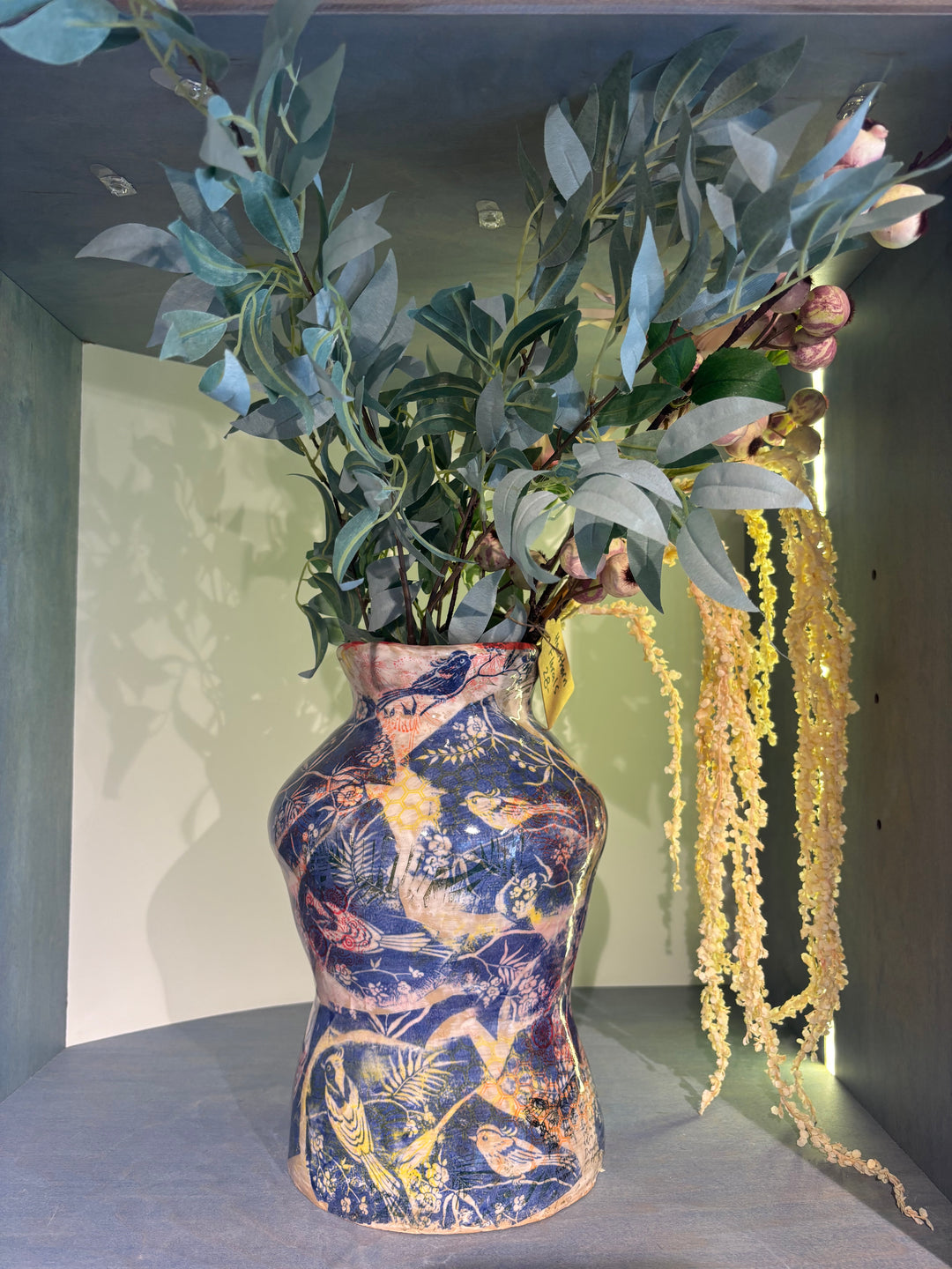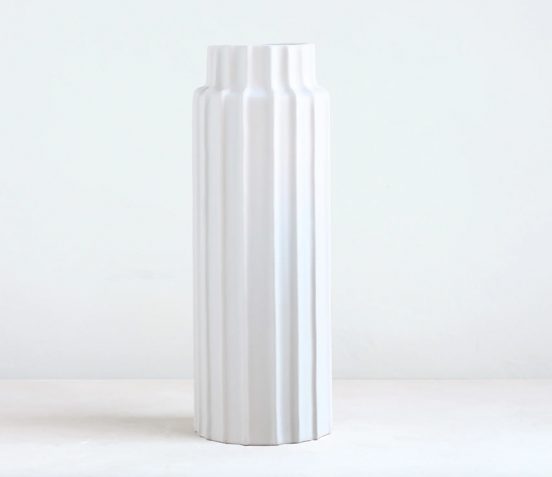 a decorative container, typically made of glass or china or stoneware and used as a vessel for cut flowers.