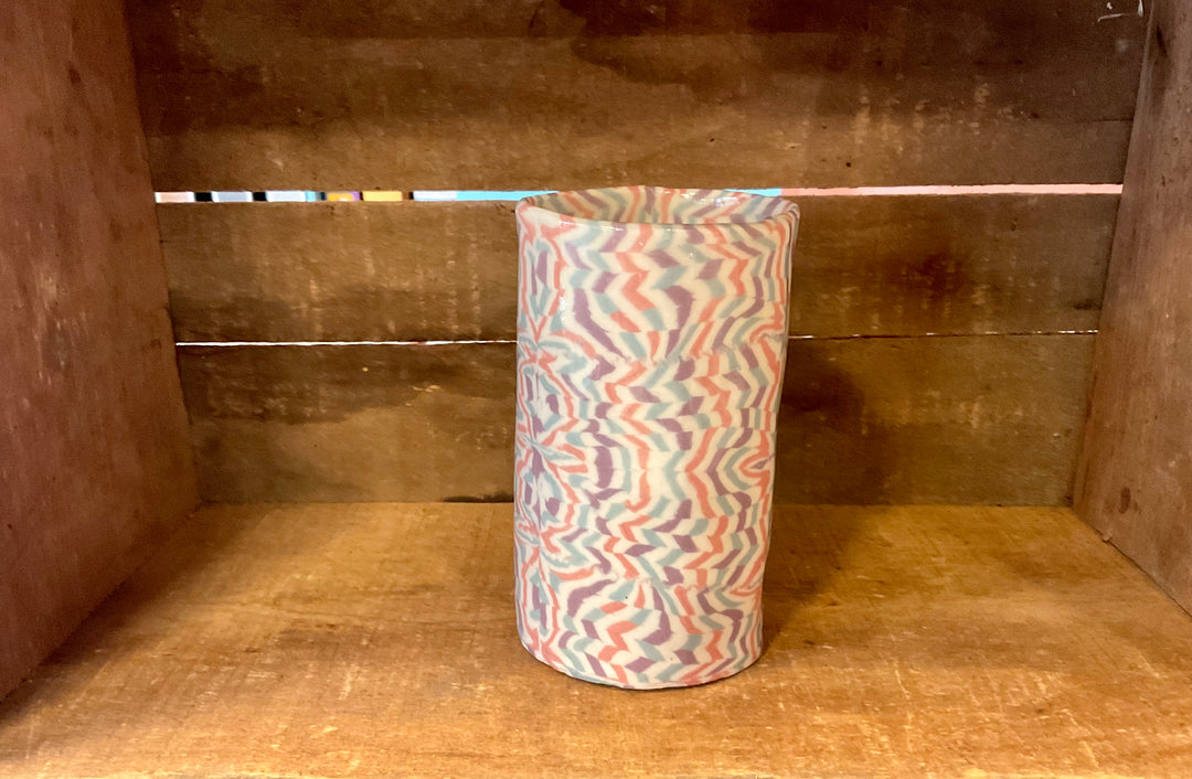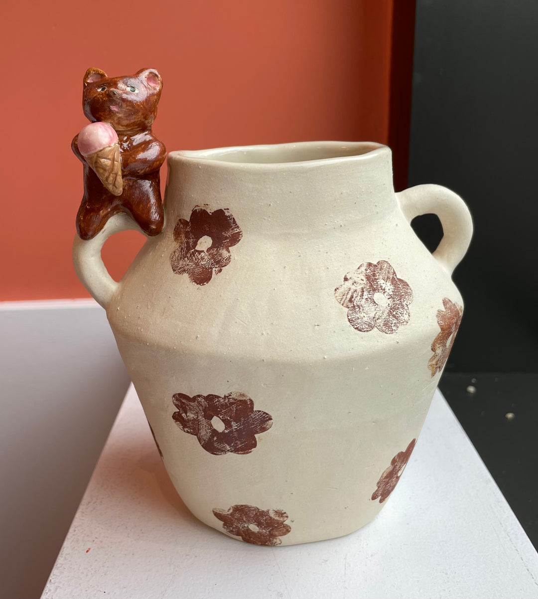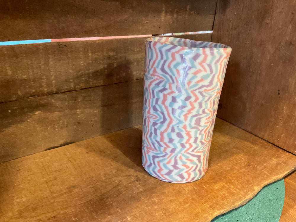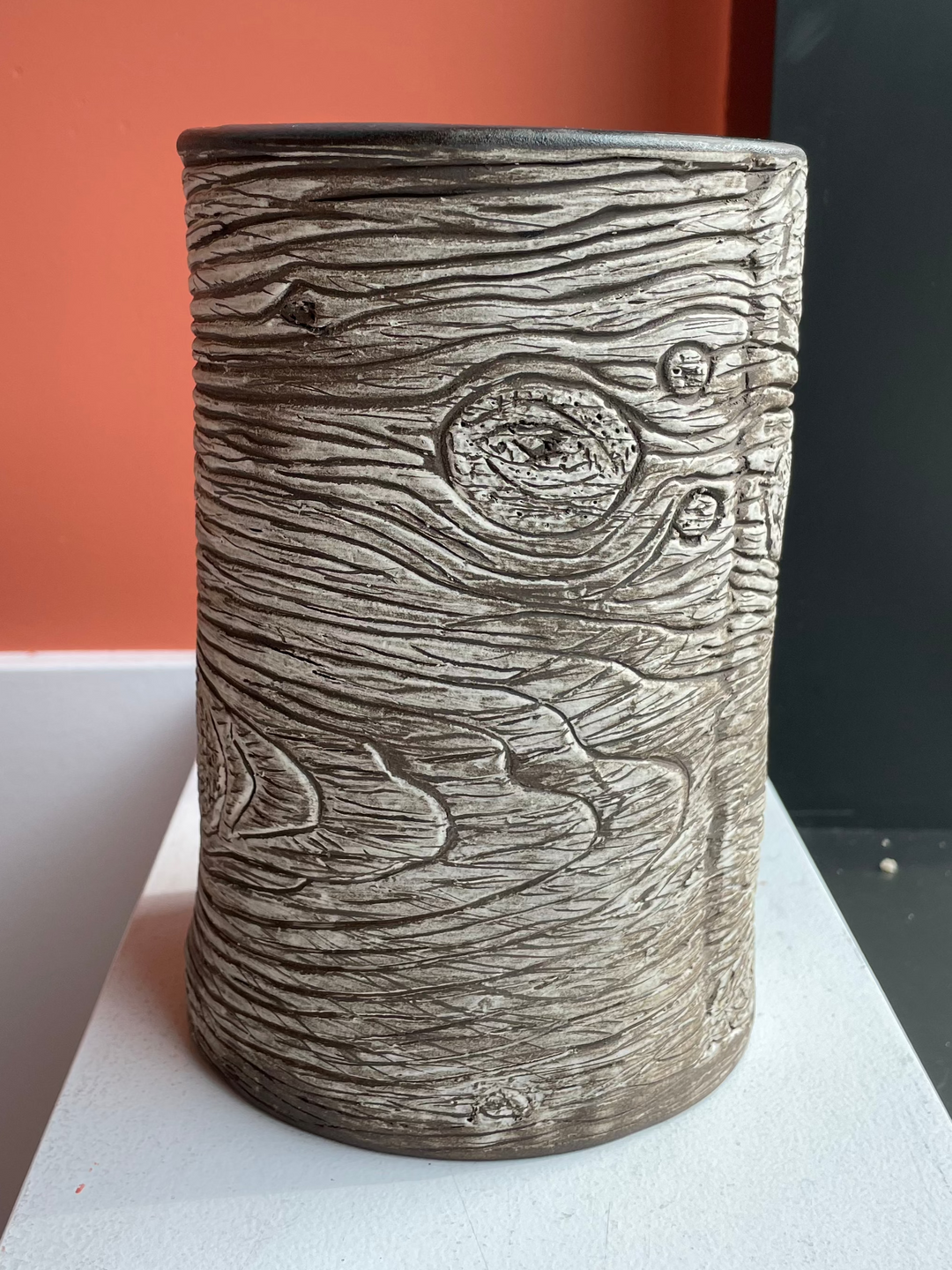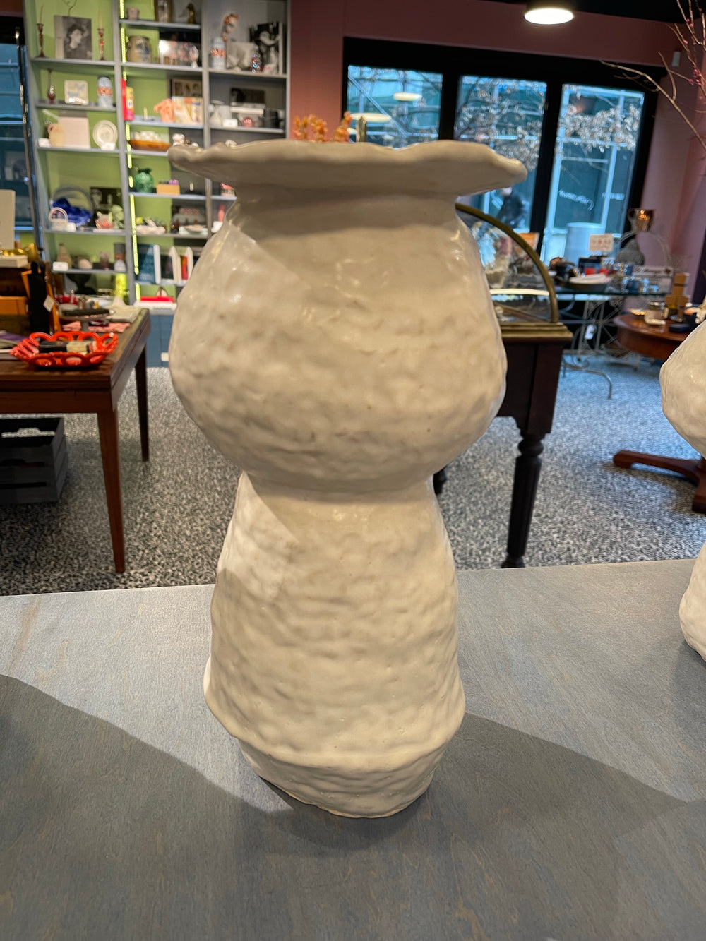 a decorative container, typically made of glass or china or stoneware and used as a vessel for cut flowers.
