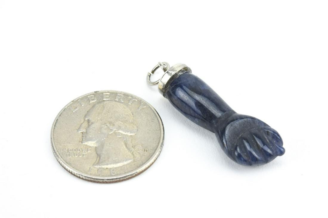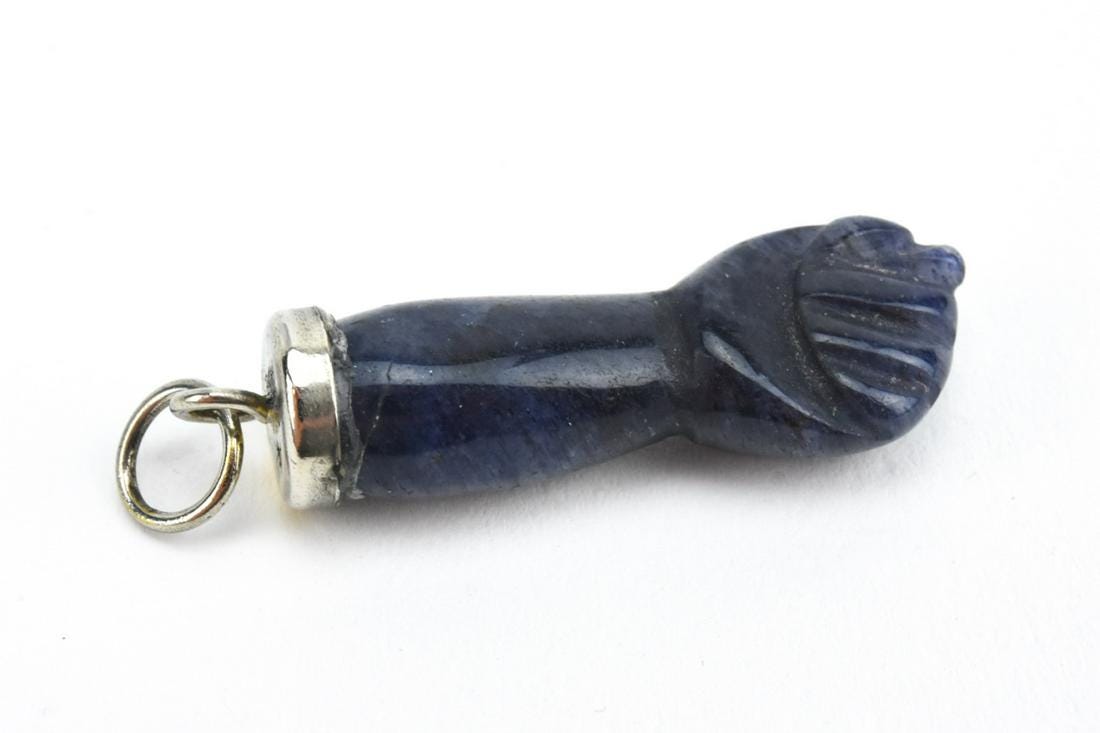 Estate 14kt White Gold & Carved Amethyst Figa. Necklace Pendant Or Charm. Hallmarked. Measures just over 1.5 inches.