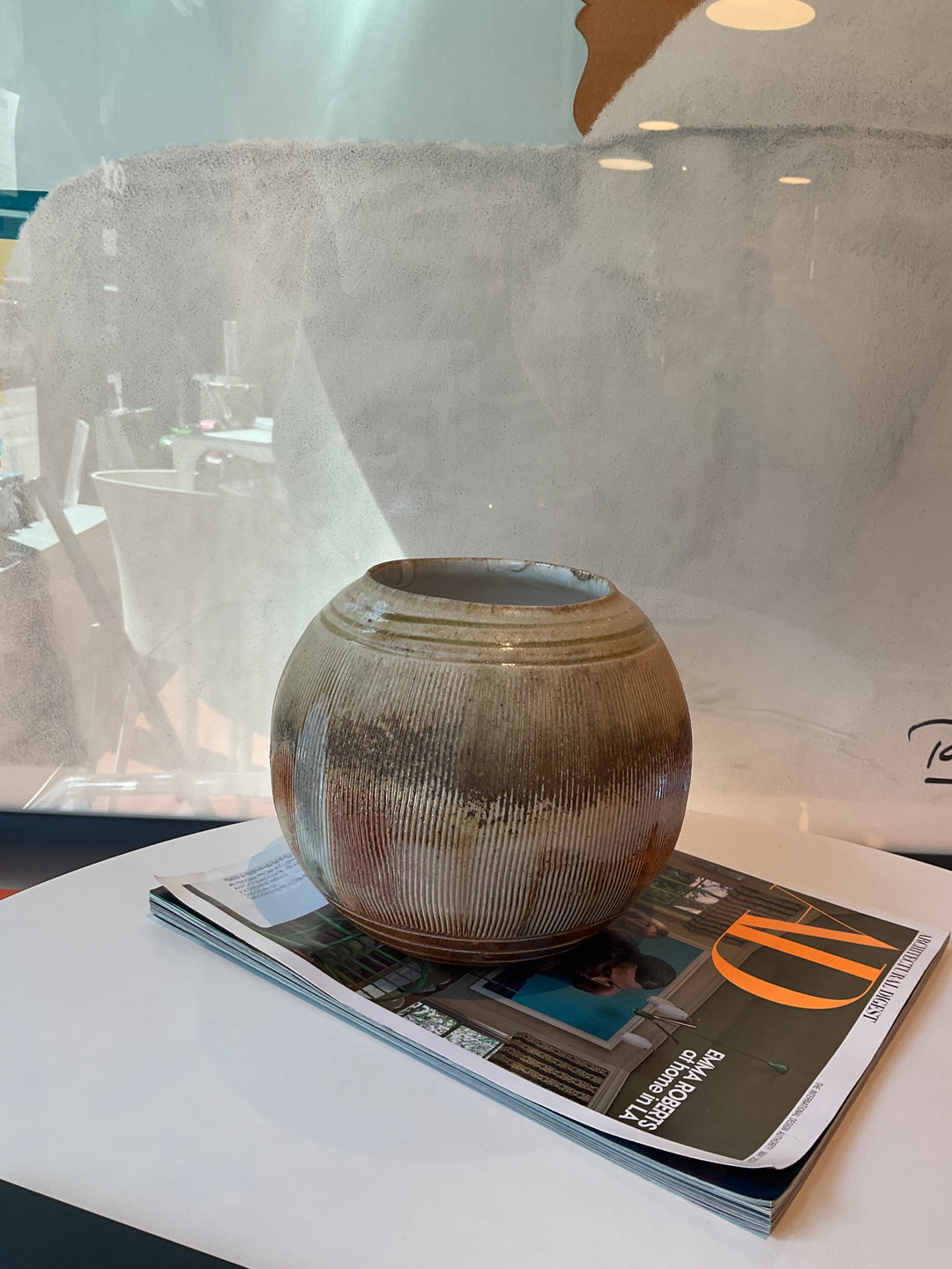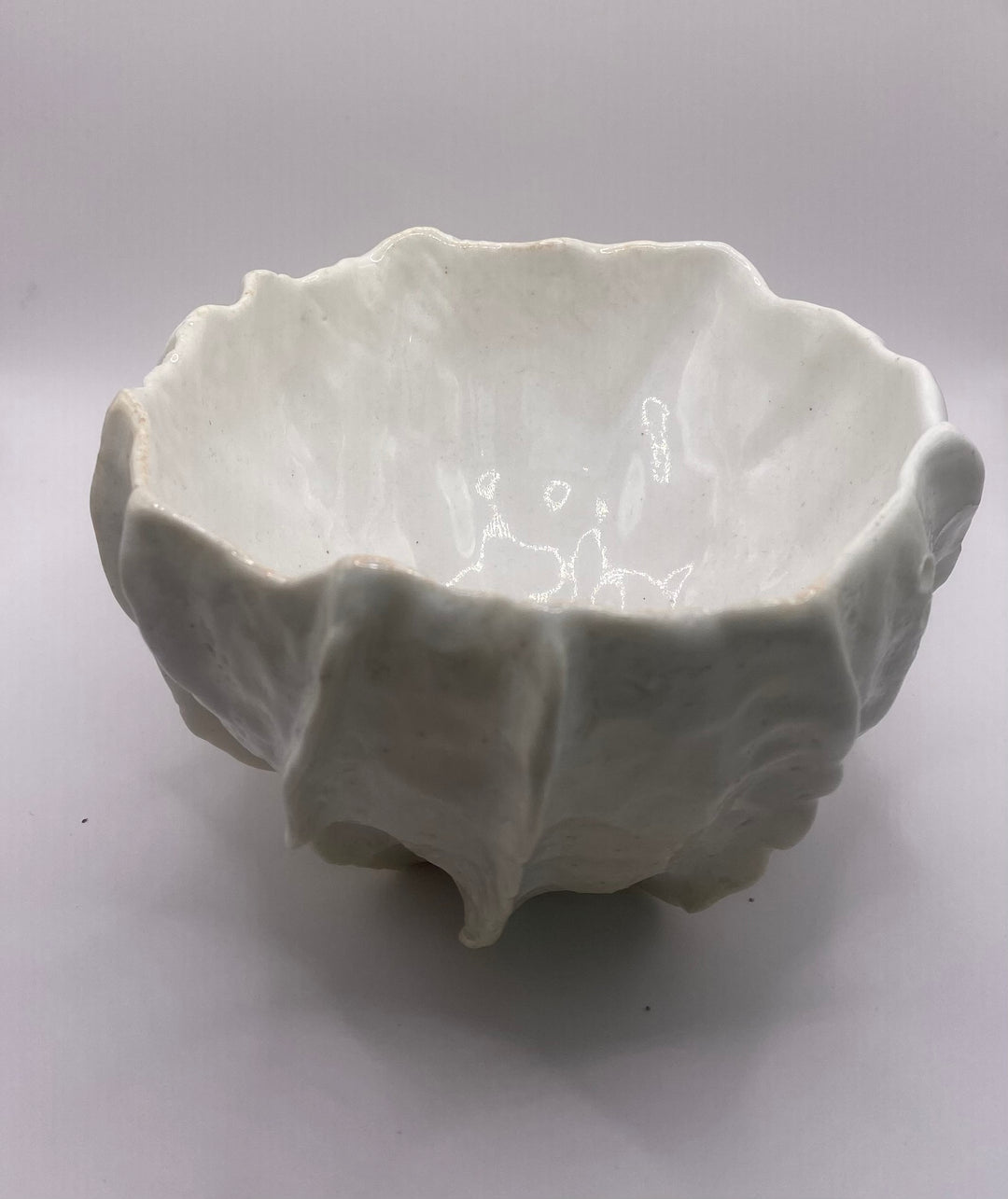 In the making of her work, she employs a whole range of clay working techniques, including throwing, altering, pressing, slabbing and coil building. All the pieces are fired two or three times. Some pieces receive a royal treatment of gold application.