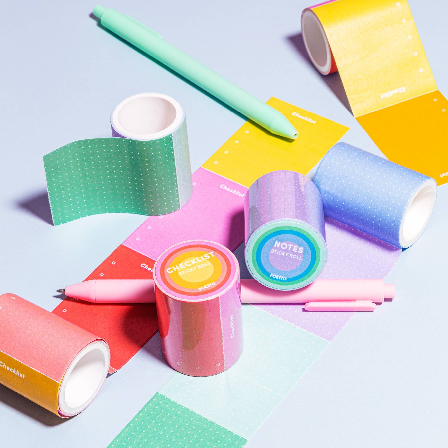 We rolled up a rainbow batch of sticky notes with a dot-grid pattern. Just pull one off to jot down reminders, drawings, love notes, or anything else you need. Just stick it on and stick to it! 30 sheets per roll Single sheet size: 2.4" H x 1.5" W