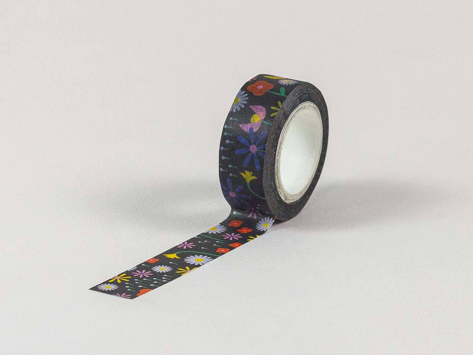 Chanson de Fleurs Black Floral Washi Tape – 15mm