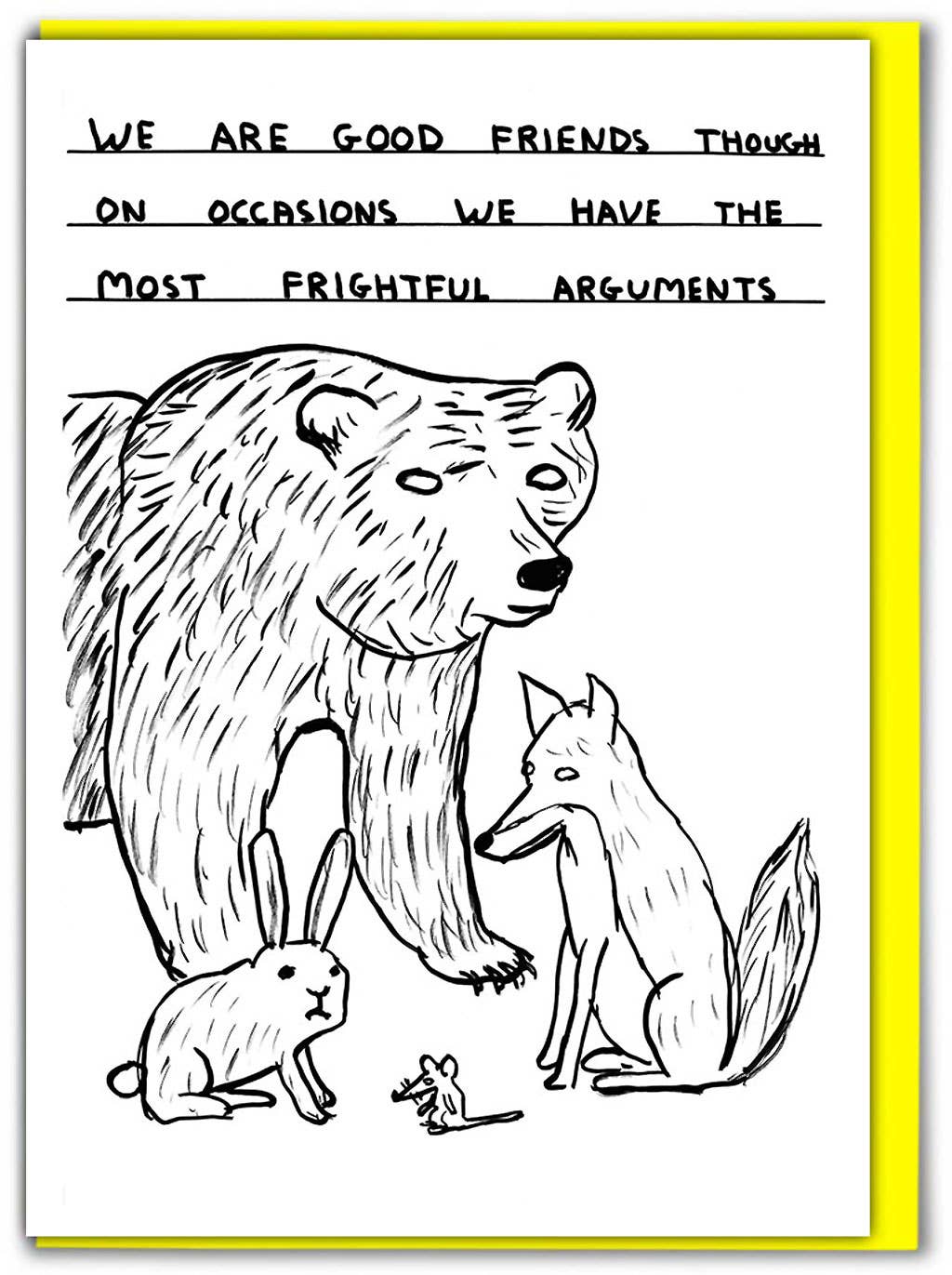 All of our cards are printed in the UK on high quality card stock, are blank inside and come cello wrapped with a neon yellow printed envelope 120mm x 170mm 0.018g