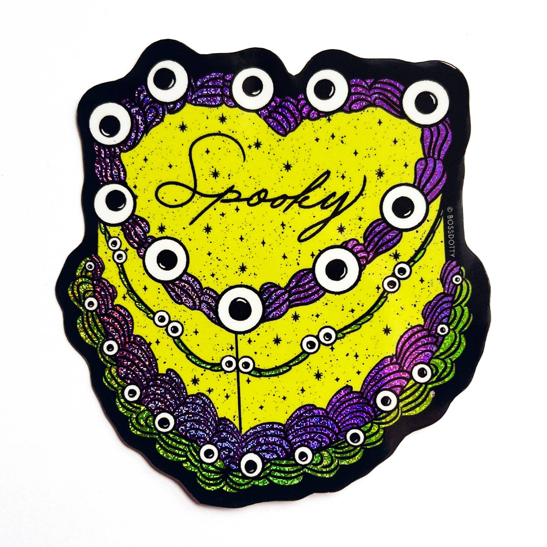 • 3" tall sticker • PVC-free glitter finish with glossy laminate • resistant to the sun and water • ships without plastic packaging • perfect for Halloween or year-round spooky season lovers!