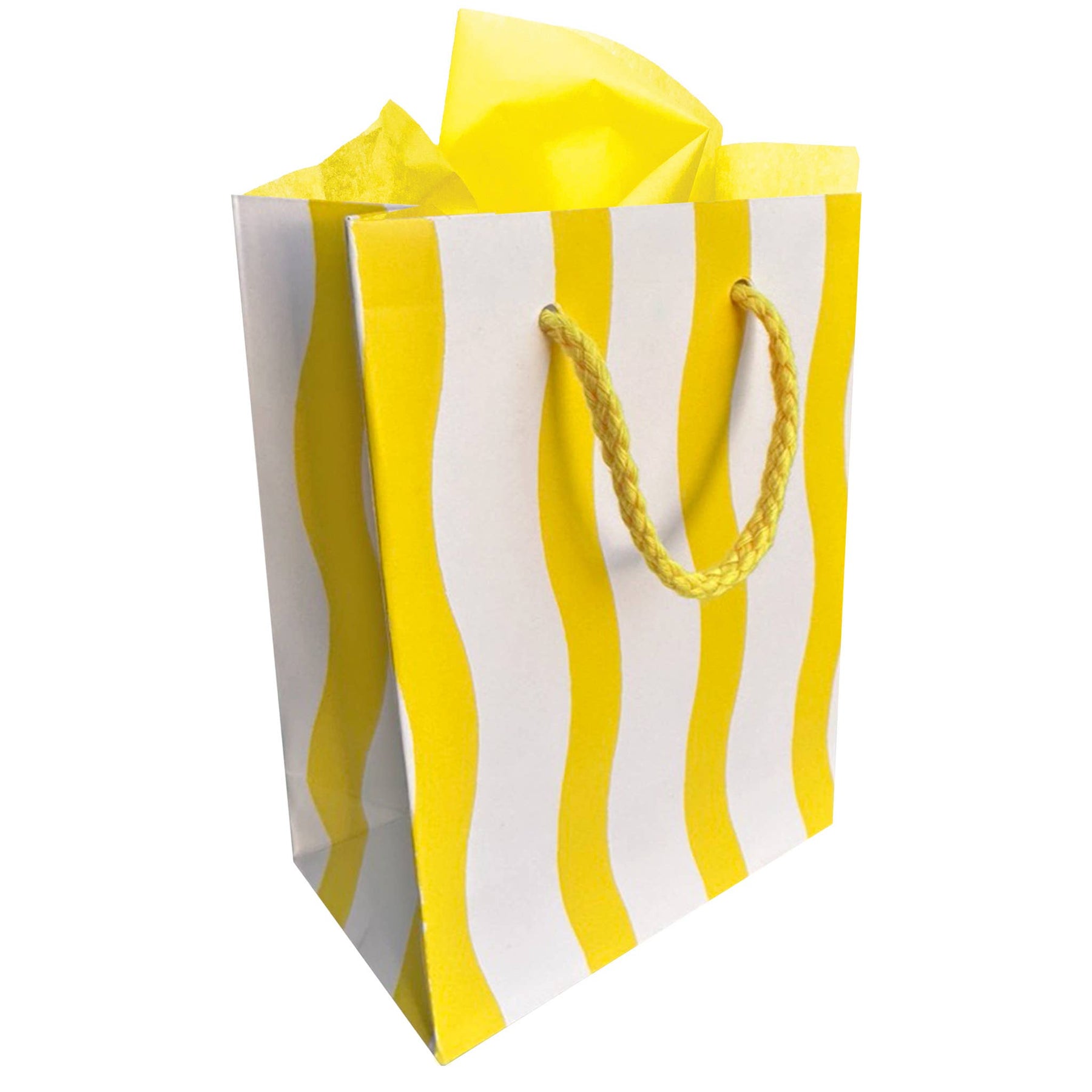 • HEAVY COATED PRINTED STOCK • L 4.5″ X D 2.5″ X H 6″ • WOVEN CORD HANDLE • PRINTED INTERIOR LINER Tissue Not Included
