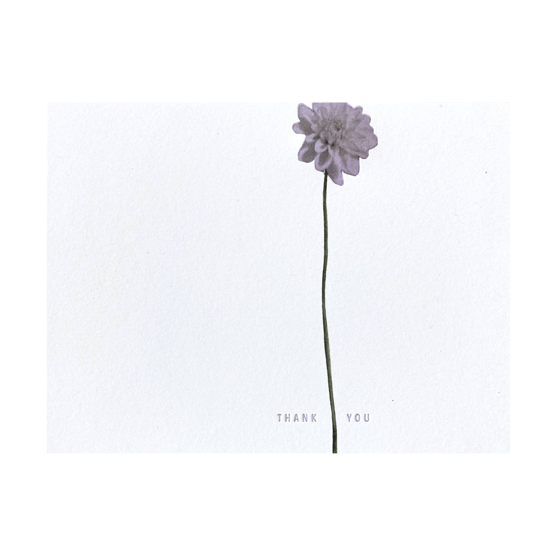 From the Origin Unknown series. Photograph from Beth's collection of anonymous antique photographs. The front image relates to the back in Embued's signature card style. Front reads: THANK YOU Letterpressed with lavender ink. Blank inside. 100% post-consumer white card stock / white envelope
