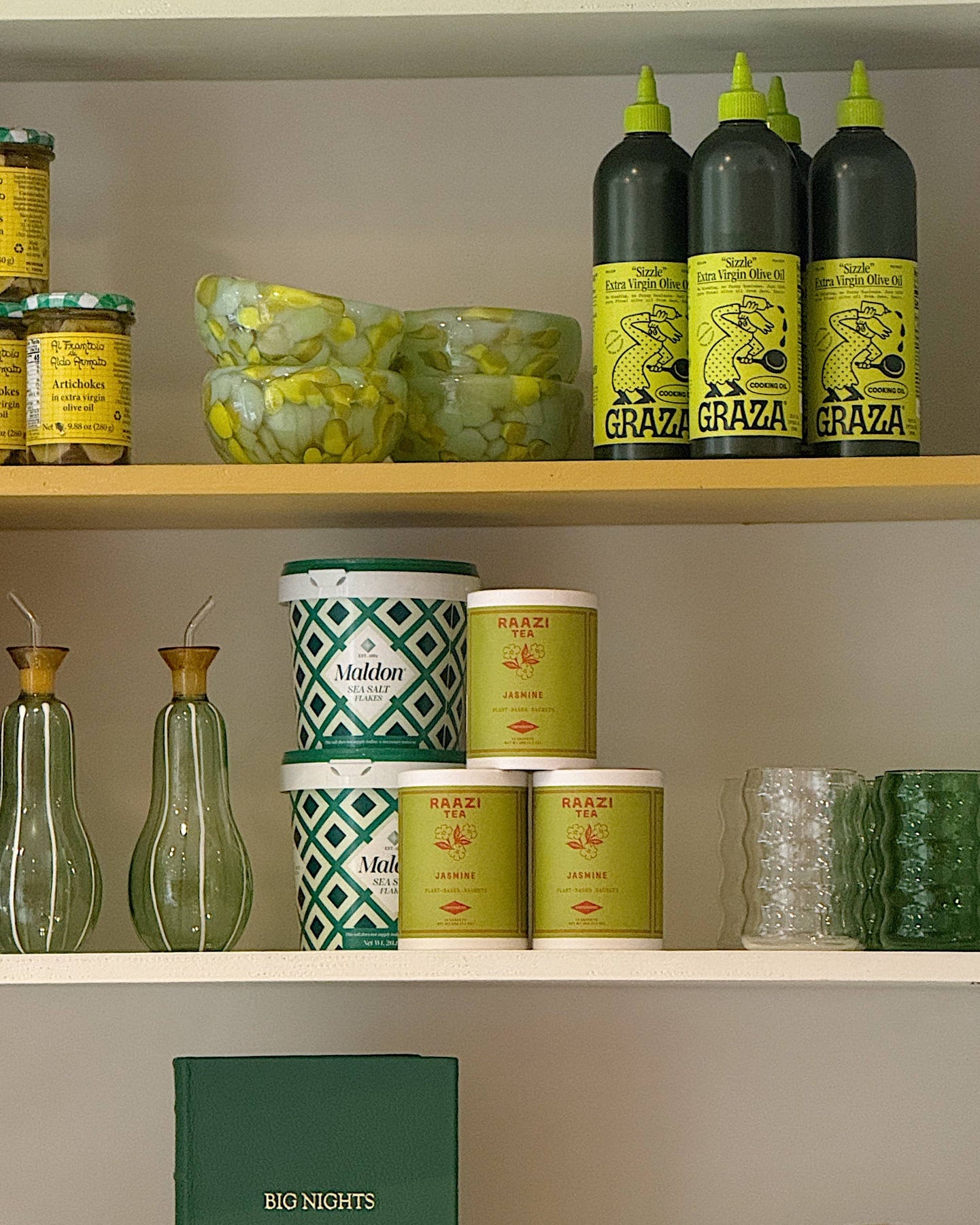Our floral and vegetal jasmine green tea. This is a caffeinated Chinese green tea scented with jasmine flowers. Each box of Raazi Tea comes with 12 sachets made from a biodegradable, plant-based material, and are packaged into box made from recycled paper. Shelf life of our teas is over a year, and our tea boxes perform great near checkout, as well as in high-end gift baskets. Ingredients: Jasmine tea (pears in image just for styling).