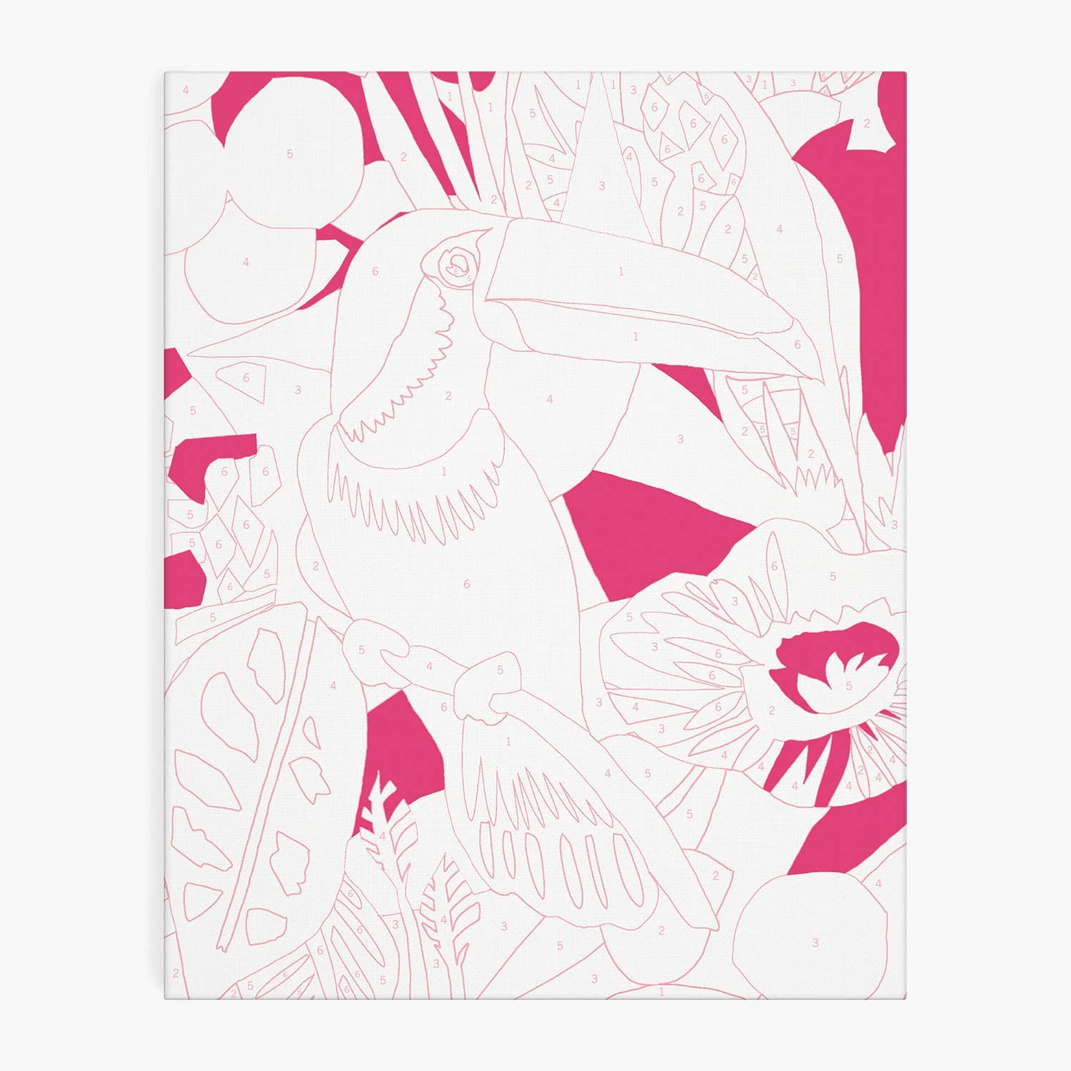 The Kitty McCall Toucan Paint By Number Kit from Galison includes line-drawing floral art on canvas from Nigerian-born, UK-based artist, Kitty McCall. This paint by numbers piece is designed for anyone to replicate McCall's stunning artwork. Influenced by the natural world around her, along with the vibrant landscape of her early childhood in Nigeria, Kitty McCall has developed a signature style of bold colors, overlaid patterns, and shapes to create geometric designs and floral landscapes for interiors, and accessories. • Box Size: 8.25 x 10.25 x 1.75", 210 x 260 x 45 mm • One Canvas: 8 x 10", 203 x 254 mm • Color guide / Instruction Sheet • One Wooden Easel, Two Paint Brushes • 6 Acrylic Paints