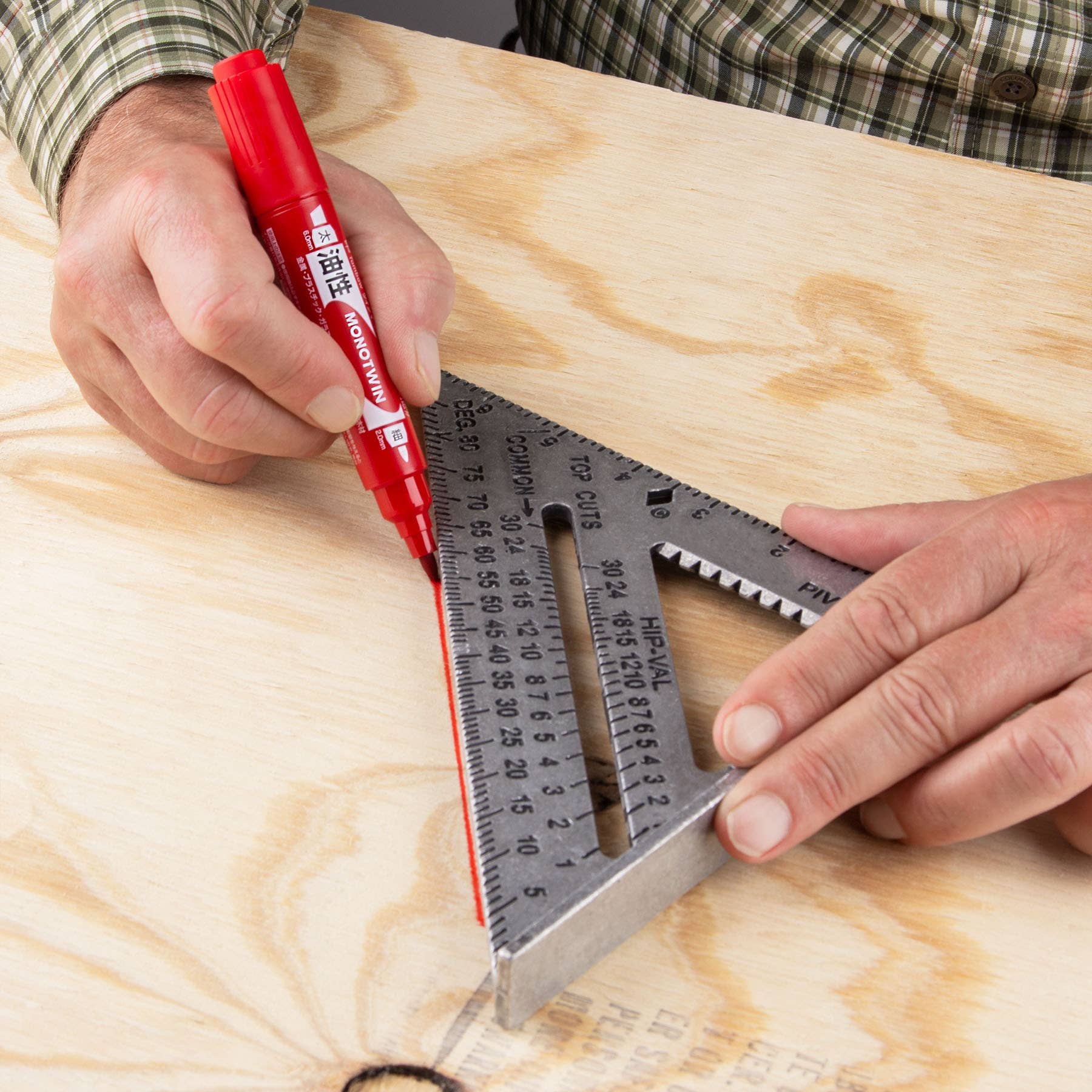 Permanent red marker with two durable tips – wide chisel tip and fine bullet tip. Works on a wide range of materials, including paper, metal, plastic, glass, vinyl, porcelain, leather, and wood. Two tips provide options for making thin or thick marks of smear-proof oil-based permanent ink. Durable tips made of polyester fiber (chisel tip) and acrylic fiber (fine tip) stay fresh and firm even after heavy use. Great for marking on shipping labels, boxes, pallets, signs, and more. Anti-roll chisel tip cap prevents marker from rolling off work surface. Water resistant red ink. 6mm chisel tip; 2mm fine tip. Also available in blue and black ink.