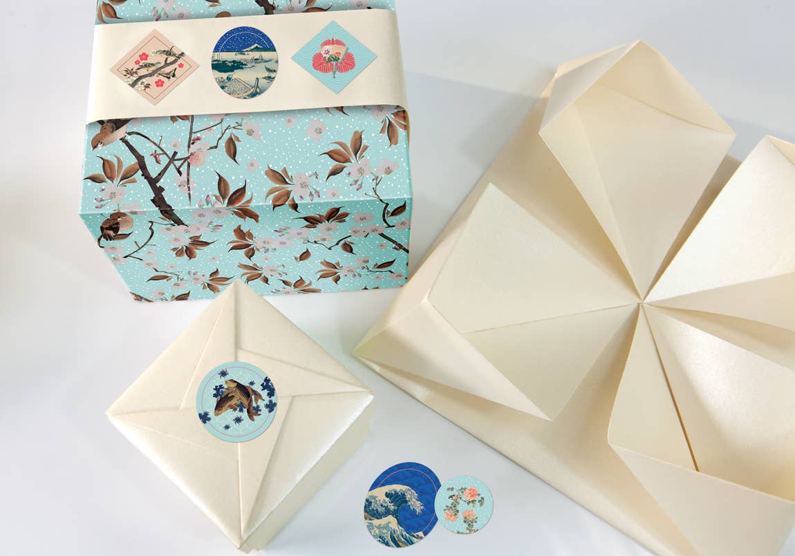Inspired by the masterpieces of Japanese prints. Amazing stickers freely inspired by Katsushika Hokusai, Utagawa Hiroshige, Utagawa Kuniyoshi, Kitagawa Utamaro, Suzuki Harunobu, Utagawa Toyokuni, to give a unique touch to objects and stationery. - 30 stickers - Various shapes - Size: 13 x 18 cm