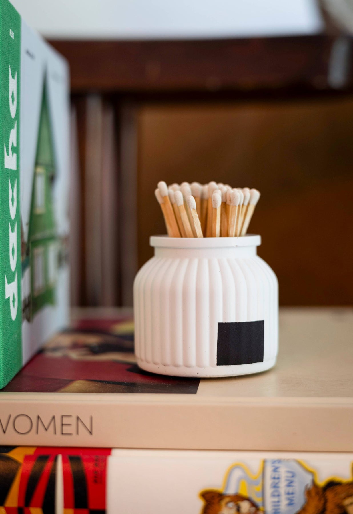 The Apothecary Candle Match Holder – Long Matches The Apothecary is a sturdy match holder designed to elevate your candle ritual. It features extra-long 3" matches—perfect for lighting multiple-wick candles with ease. Practical, beautiful, and built to last. With its western-inspired design and durable hand-poured concrete form, this piece adds both style and utility to any shelf, tray, or tabletop. Includes 3" candle matches Handmade in small batches in Nashville, Tennessee Natural color variations, textures, and air bubbles are part of the charm—no two are exactly alike