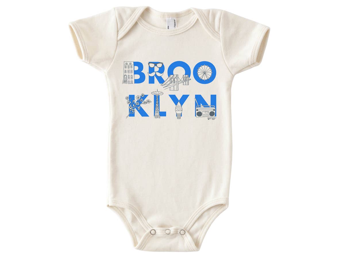 Organic cotton baby one-piece featuring bold “Brooklyn” typography. USA made, soft on skin, and perfect for baby showers and city-pride gifts. Celebrate borough pride from day one with the Brooklyn Font Baby One-Piece—a soft, organic essential designed for little New Yorkers and Brooklyn lovers everywhere.