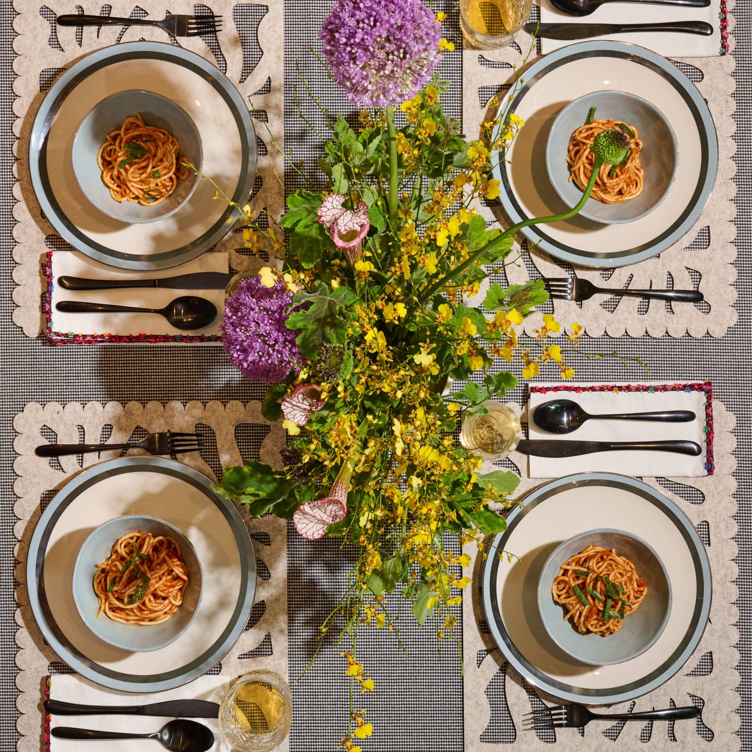Fall / Holiday 2023 Collection 'Tis the season to be cozy! These wool felt laser-cut placemats are ravishing, elegant and radiant. They add unique depth and intrigue to the tabletop. And best yet, they can be spot treated, so go on and get saucy! Made in USA 100% premium reclaimed wool felt Size: 17” x 13” Spot treat as needed, do not bleach