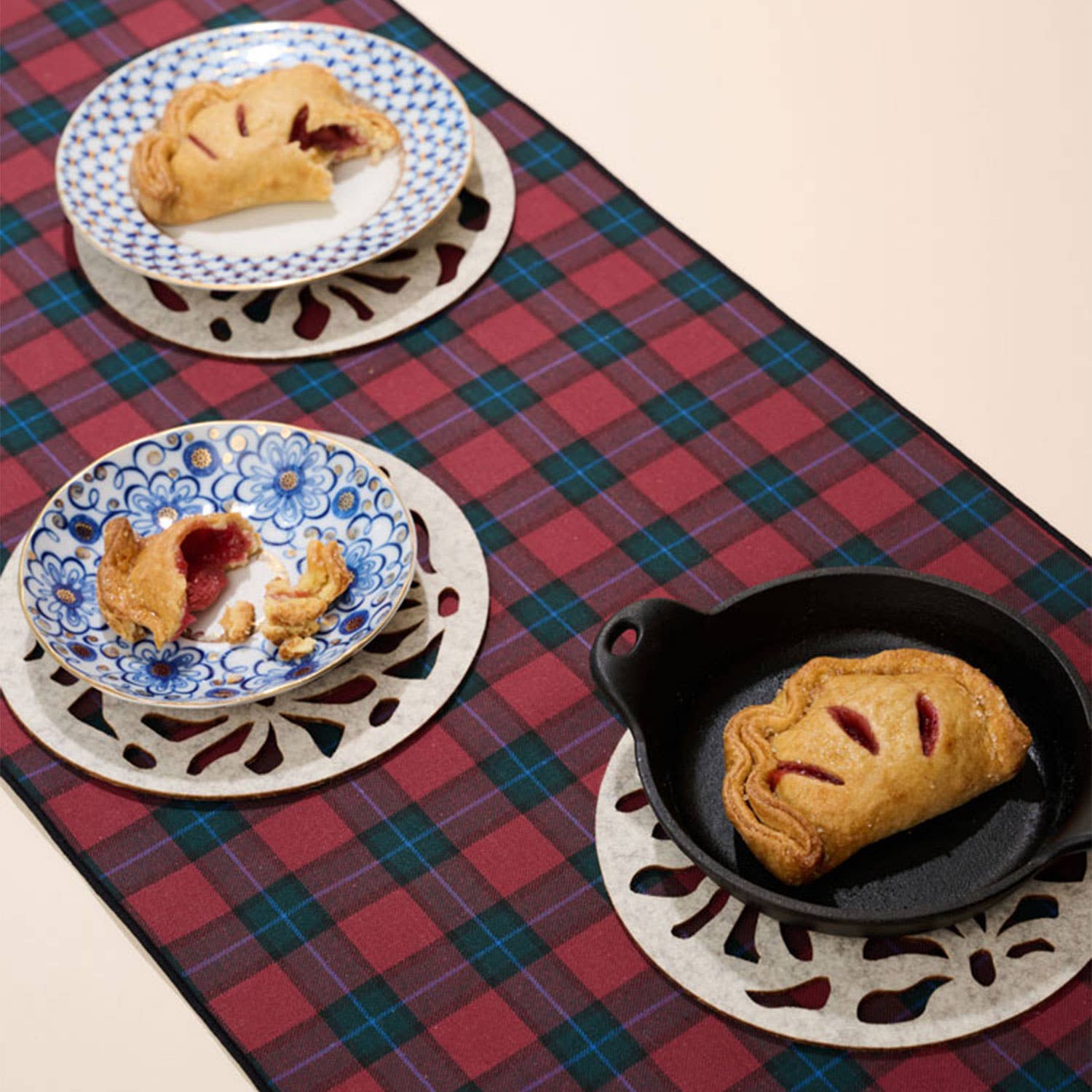 Fall / Holiday 2023 Collection 'Tis the season to be cozy! These wool felt laser-cut trivets are ravishing, elegant and radiant. They add unique depth and intrigue to the tabletop. And best yet, they are functional and heat protective, so go on and place those casserole dishes down the table. Made in USA 100% premium reclaimed wool felt Size: 7.5" round Spot treat as needed, do not bleach
