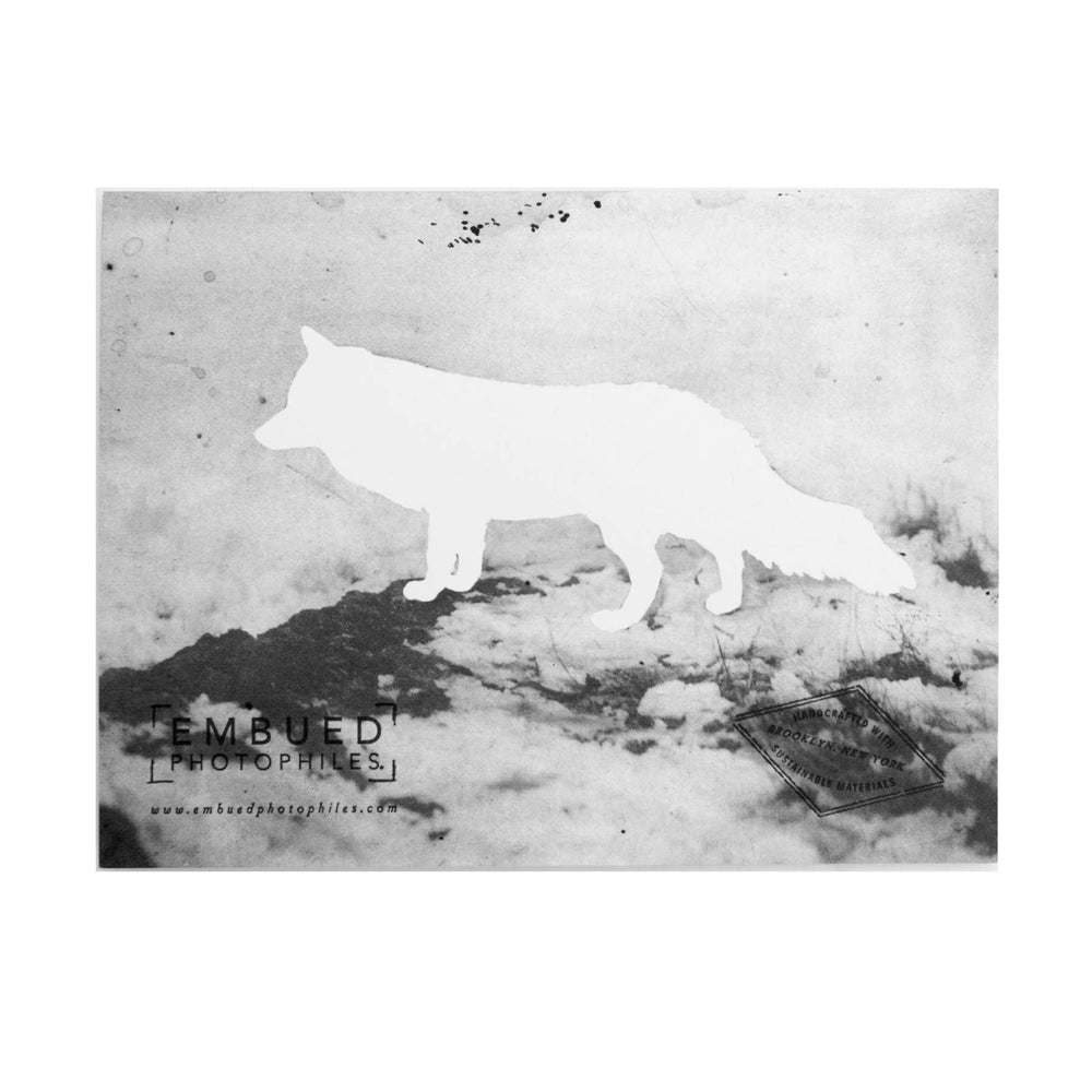 From the Origin Unknown series. Photograph from Beth's collection of anonymous antique photographs. The front image relates to the back in Embued's signature card style. Front reads : HEY, FOXY Letterpressed. Blank inside. 100% post-consumer white card stock / white envelope