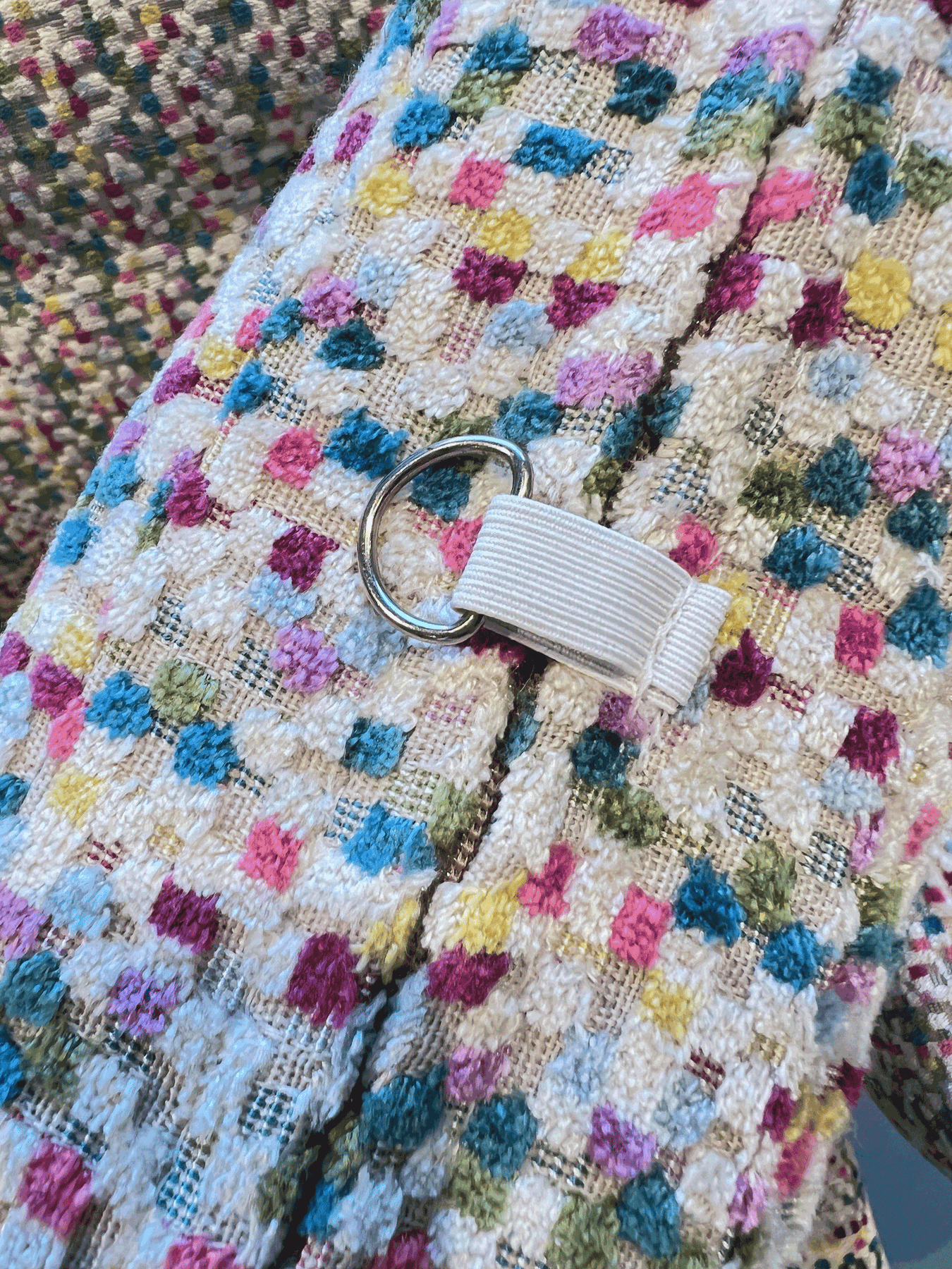 Mid century club chair  reupholsered 2021 by hand in a Brooklyn, NY  workshop  with Kravet Confetti.  . Dimensions - 29" x 32" x 29"