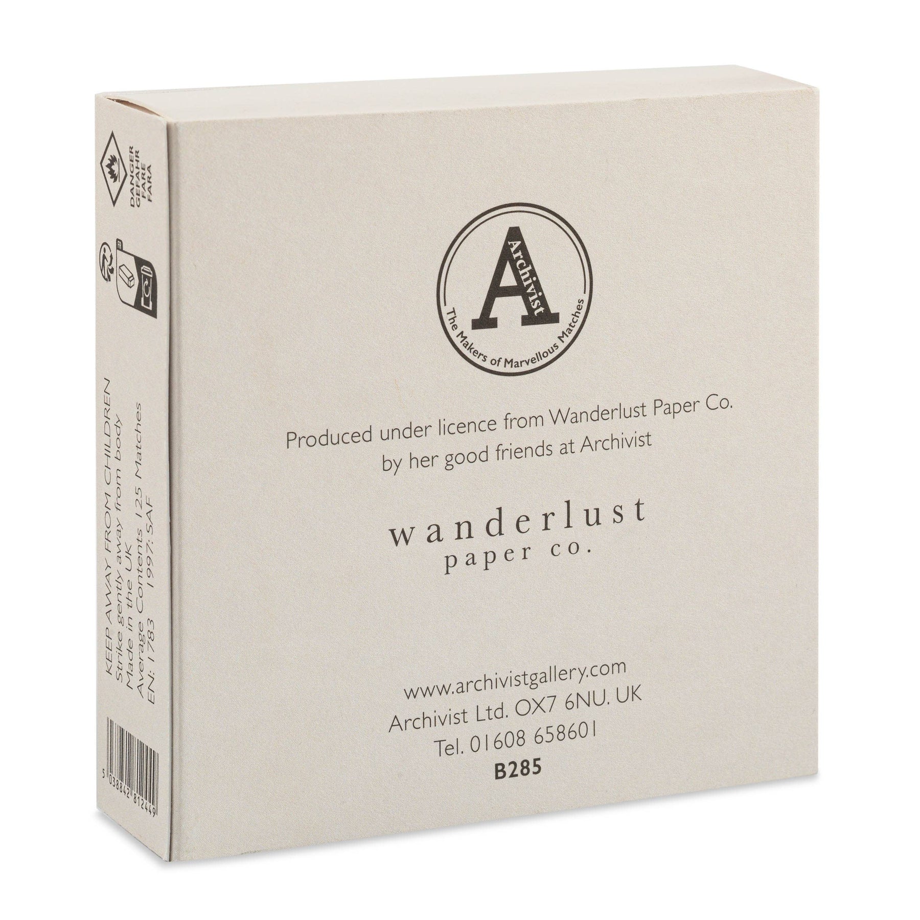 Our signature square matchbox featuring a blue line drawing of a dove surronded by gold foil stars and the words 'Peace on Earth'