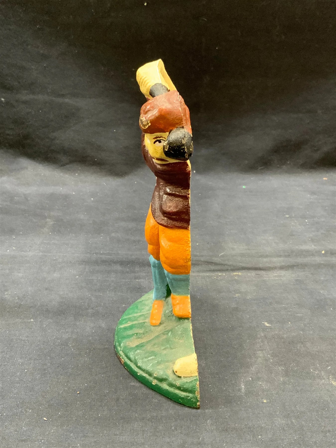Vintage painted cast iron golf figural doorstop. Measures approx. 5.25 x 2 x 7 inches. Piece has weight. Some surface wear including scratching observed. Doorstop, vintage doorstop, iron doorstop, figural doorstop, golf doorstop, collectibles, home decor and accessories, table decor and accessories, homewares, 10 cs